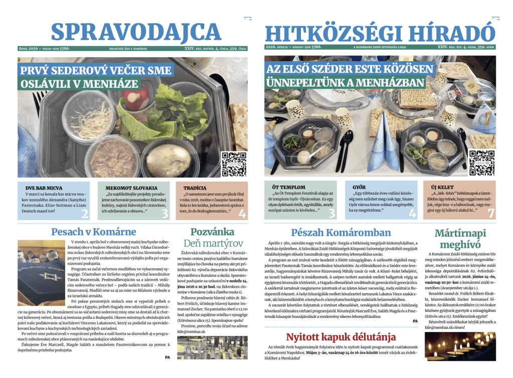 Židovská náboženská obec v Komárne týmto pozýva všetkých záujemcov na piatkový večer pri príležitosti Medzinárodného dňa pamiatky obetí holokaustu OSN a sviatku Tu bi-švat, nového roka stromov, ktorý sa uskutoční v piatok 30. januára 2026 od 16:00 v Menház – Židovskom kultúrnom a komunitnom centre (Ulica Eötvösa 15).
