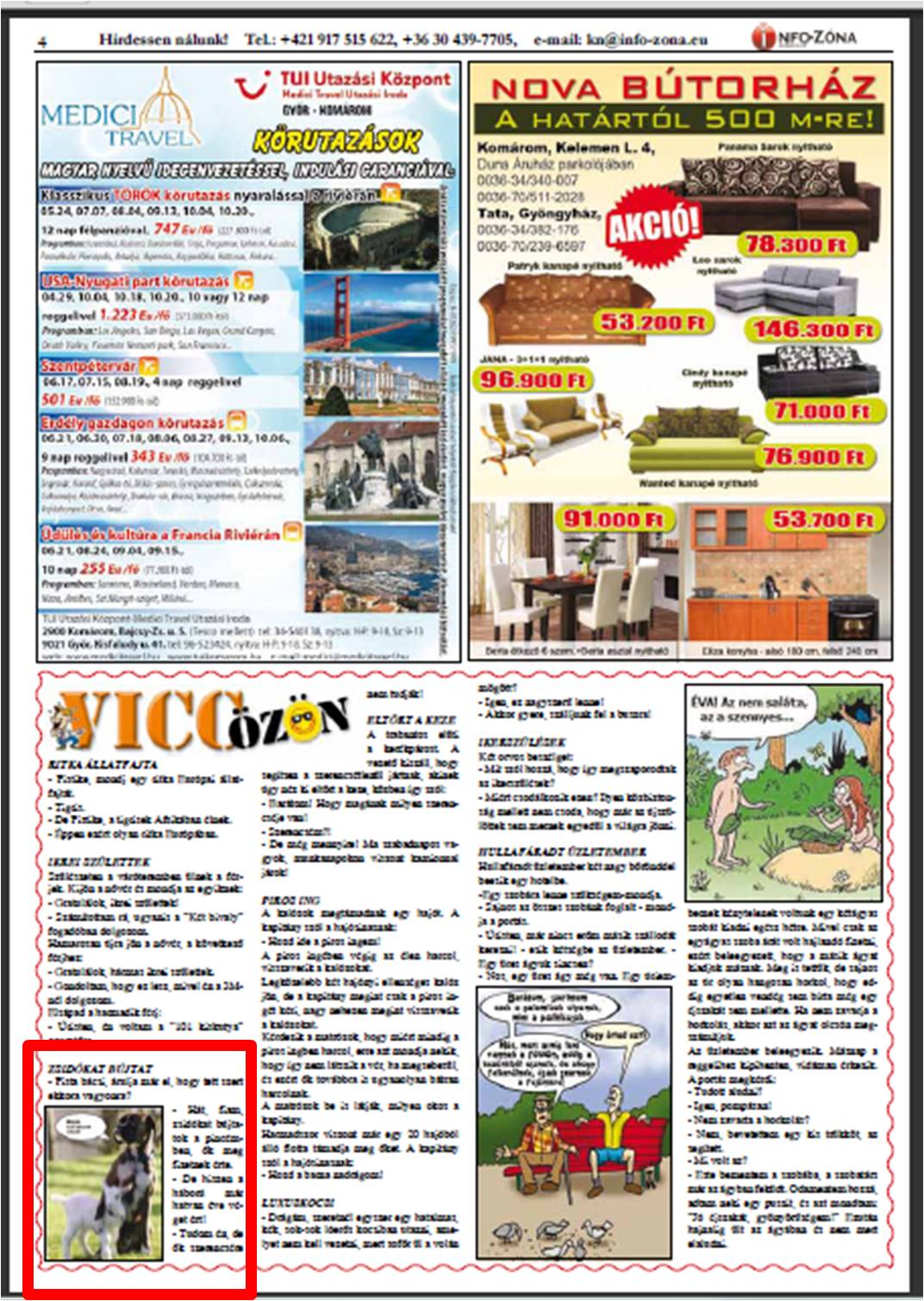 (forrás: Info-Zóna, 30 000 helyi háztartásba kézbesített reklámújság http://info-zona.eu/info-zona%20aktualkn/index.html)