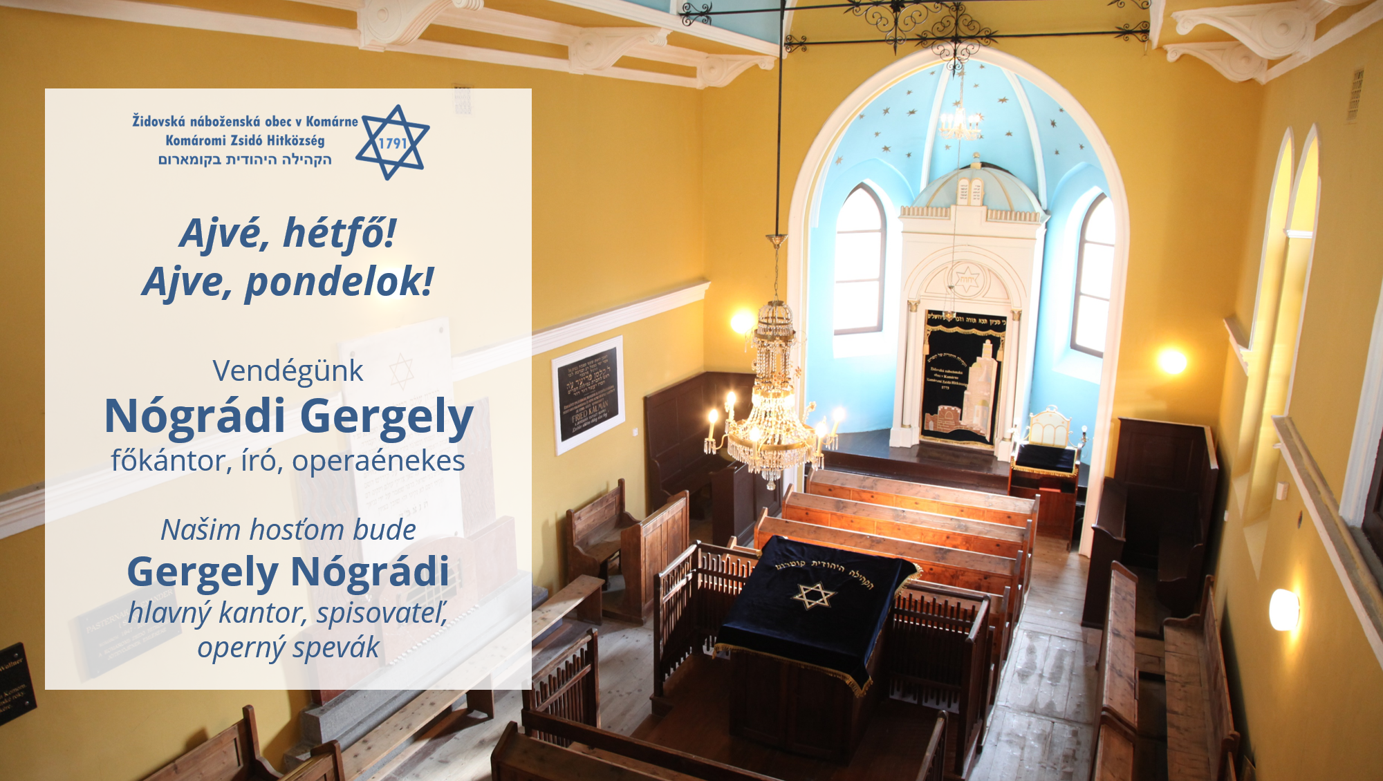 Online program Židovskej náboženskej obce v Komárne očakáva záujemcov každý pondelok od 18. hodiny na svetovej sieti v rámci iniciatívy MENHÁZ ONLINE.
