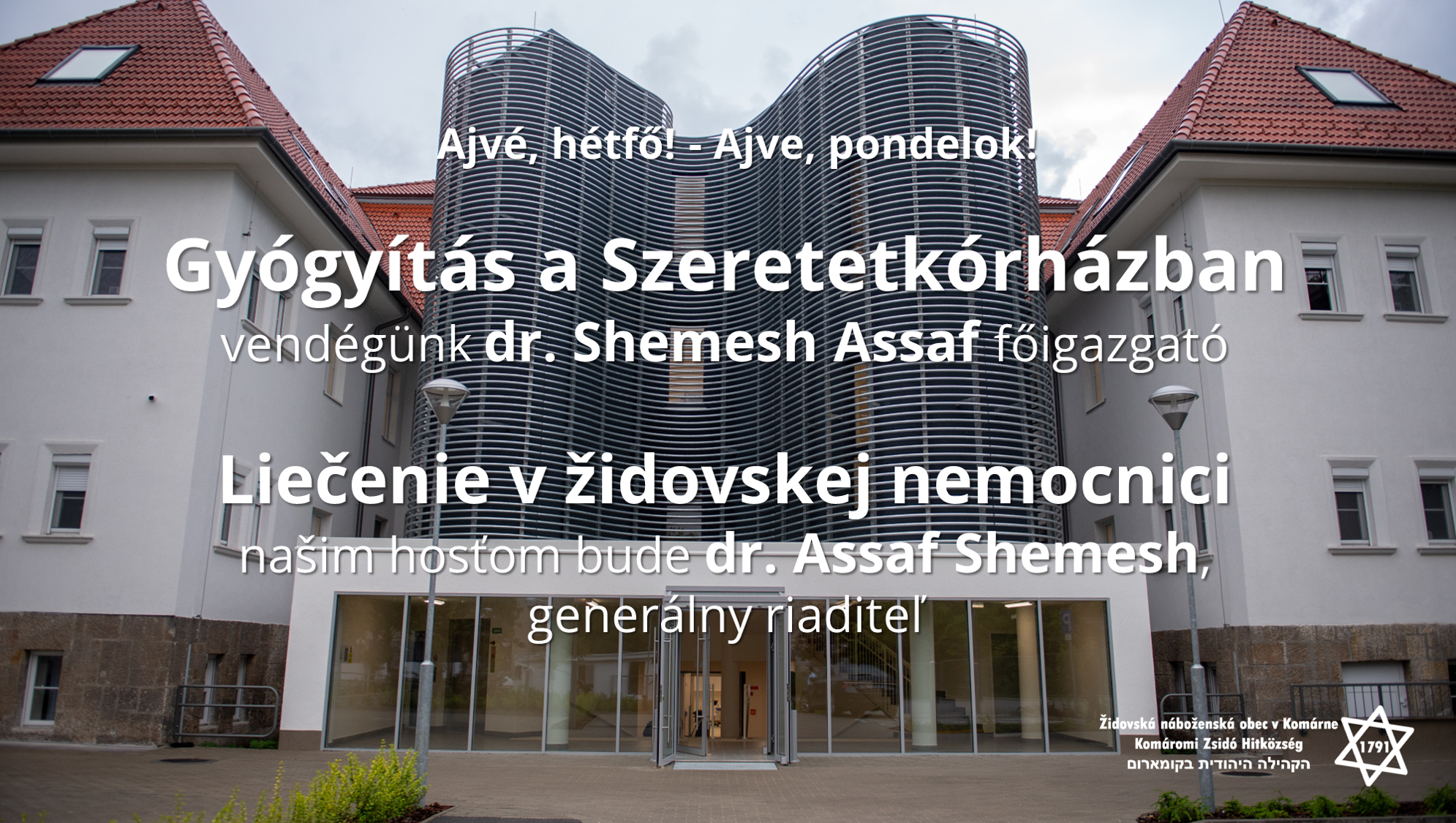 Strávme spolu hodinu, vzdelávajme sa spoločne, porozprávajme sa o našich problémoch tak, akoby sme sedeli v sále Zoltána Wallensteina, či v radoch synagógy a hovorili o výzvach každodenného života či sviatočných chvíľ.
