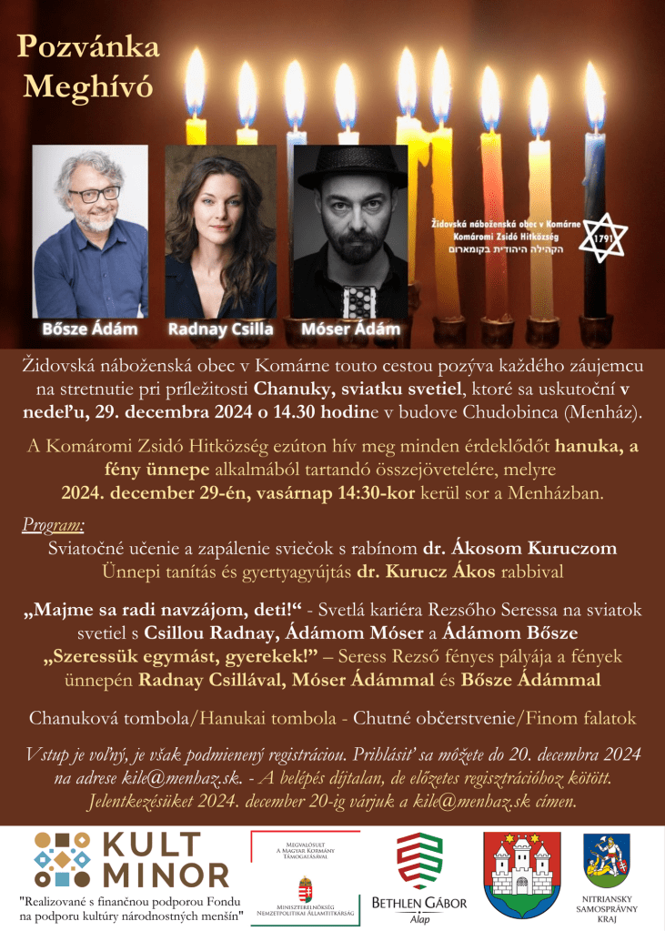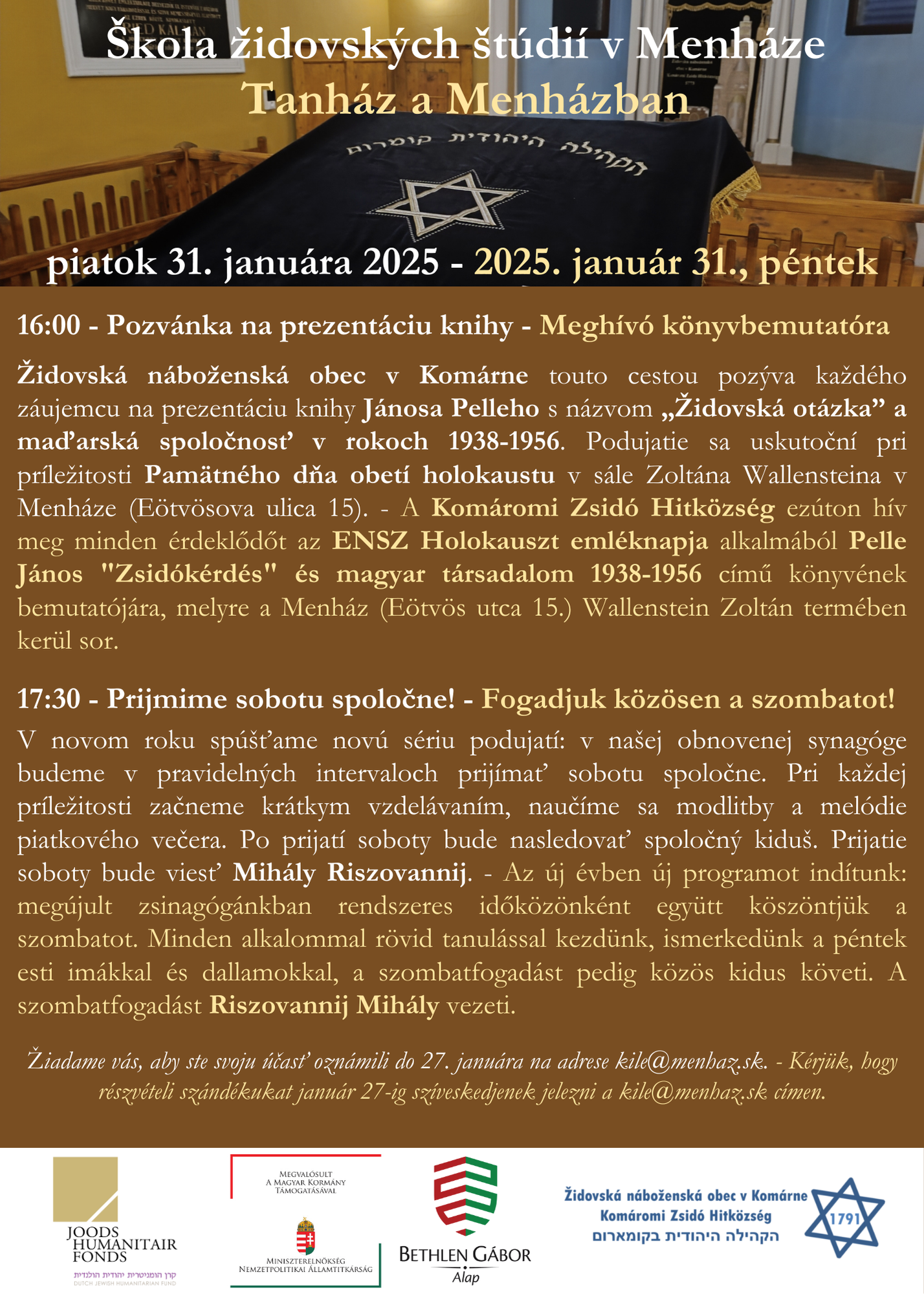 Židovská náboženská obec v Komárne – Komáromi Zsidó Hitközség – Jewish Community of Komárom