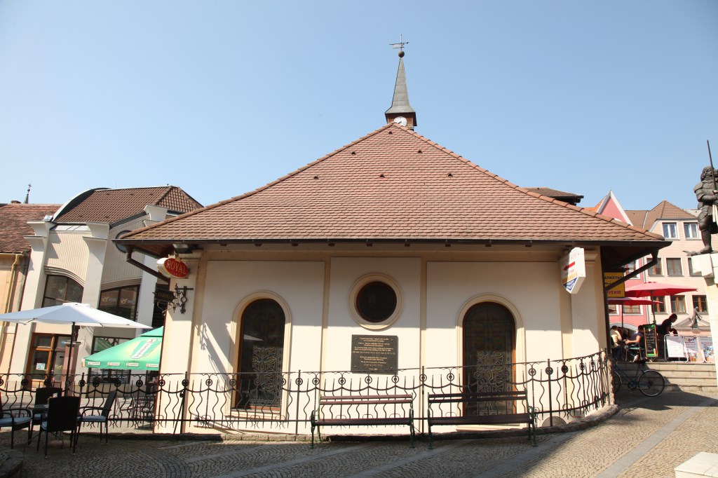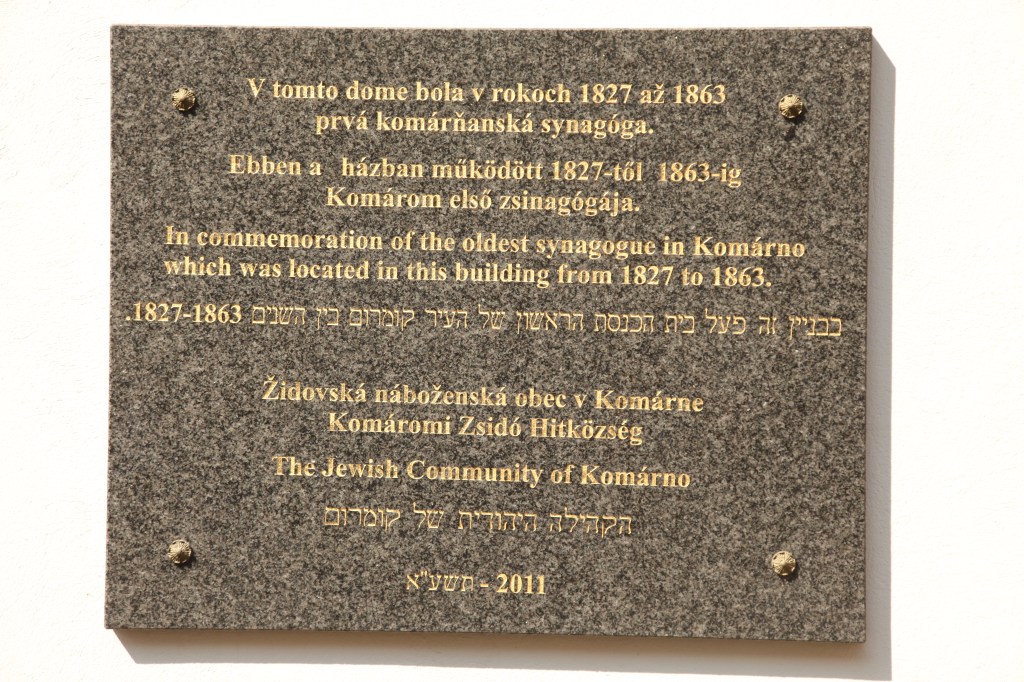In 1827, the ownership of the building was transferred to the Jewish Congregation of Komarno. The first synagogue was established here; the roof of the building was elevated, a new women’s gallery was added, new windows and doorways were cut, and the windows of the former theater had been walled up. Successively, it was used for multiple purposes. It even used to be the headquarters of the city police. During its latest renovation, the main façade was restored in a way to allude to its synagogue function. Motifs on the stained glass windows depict the surviving murals of the synagogue.